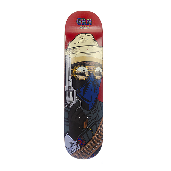 Diseñado por Emilio Fernández para utilizarse en Bowl, tiene medidas de 31.75″ de Largo y anchos variables por la forma Old School, cóncavo medio y Wheelbase de 14.25″