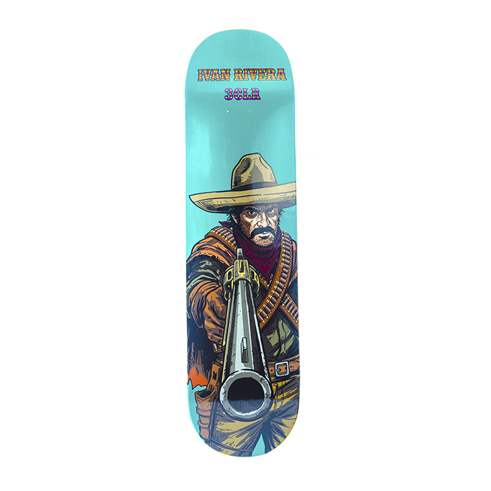 Un Shape muy cómodo para patinar en Street y en Bowl, con una mayor área de Nose y Tail. Wheel base de 14.25″